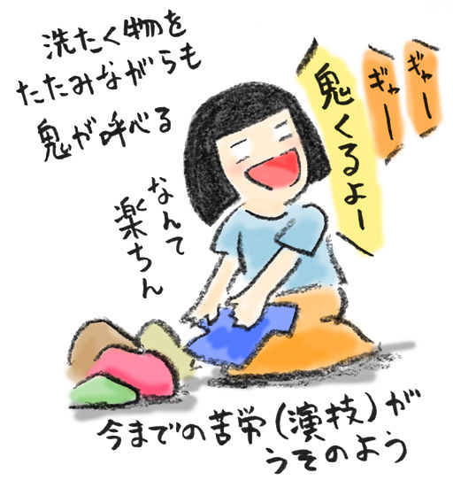 鬼を見て恐ろしがる人役と鬼役では演技力の必要量がえらい違いです。