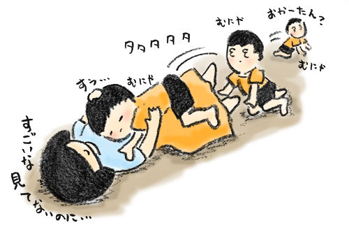 子供に背を向けてねると『足入れていい?』と片足でズボンのゴムをゴソゴソ上からパンツの中までズボッと入れてきます。