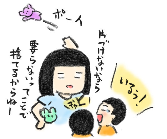 それなのに片付けない時は「片付けないなら捨てるよ」とポ〜イポイと捨てます。