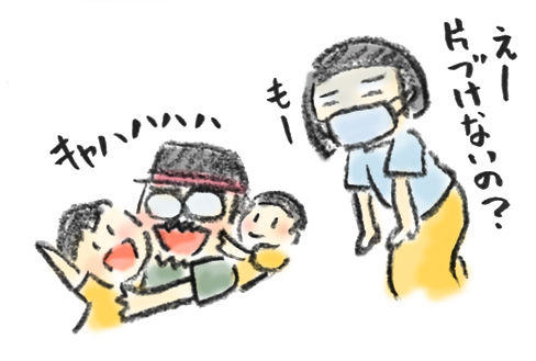 想像力と引き換えに失ったもの 6歳4歳の子供達は仮面ライダーにハマり中一年くらい前くらいかなぁ。それまでは最強はアンパンマンだったのに仮面ライダーを見始め完全に仮面ライダーに移行しました。とはいえウチにある仮面ライダー系のおもちゃは甥っ子のお古の10年ものの人形のみ(ベルトですらない。笑 ... 6歳4歳の子供達は仮面ライダーにハマり中一年くらい前くらいかなぁ。それまでは最強はアンパンマンだったのに仮面ライダーを見始め完全に仮面ライダーに移行しました。とはいえウチにある仮面ライダー系のおもちゃは甥っ子のお古の10年ものの人形のみ(ベルトですらない。笑)ベルトとか買ってあげたら喜ぶんだろうなーと誕生日だし買ってあげようかと思っていたら(一年前)ゴミの瓶の蓋と仮面ライダーのメンコみたいなやつをくっつけてお手製変身アイテムを作ってました。『無い物は想像で補う』一瞬で買うこと止めましたよね。笑児童館で勤めている方に「男の子なんて、空き箱を大きいダンボールにたくさん放り込んだら、それだけで、ずっと何か作って遊んでる」と聞きました。クリエイティブ職に就いた私とまーくん。昔から絵を描いたり、物を作ることが好きだった。その喜びも知っている。その喜びを知って欲しい。と思い採用。大きなダンボールに使えそうなゴミが出るたびに放り込む。作るの好きじゃないんだろうなと思っていたけーくんも(数字大好き理系ボーイ)ずーーっと何かを作って遊んでいます。そして部屋がカオス。笑作ったものは取っておきたいし新しいものも作りたいし材料はたくさん必要。今年しーちゃんの誕生日に仮面ライダーのベルトを沢山貰いました。まーくん方の甥っ子からのお下がり。これも10年もの。笑でもベルト!!これで本当の変身が出来る。開ける喜びもあるだろうからと箱ごと沢山貰いました。阿鼻叫喚。毎夜変身しています。遊び方もこちらが危惧していたように一辺倒にならずいろんなアイテムを駆使して遊んでいます。空き箱も中の梱包材もヌイグルミも工作したものも何でもかんでもつぎ込んで遊んでいます。そう部屋がカオス。笑空き箱がでかい。全部がでかい。量が多い。それぞれの場所にキチンとしまったとて部屋に物が多い。ダンボールが多いことによる引越し感。シンプルすっきりな部屋が好きなんですけど…でもいいんです。想像力は全部が引き出しに入ったきっちり片付けられた場所ではなく多少散らかってる方が育まれるって聞いたから。分からないでもない。目に付いたもので「ああしよう!」って閃いてるもんな。でもうぅ。部屋がぁ…↓『お片づけ』それは常に親を悩ます重要課題 ●まーくんが死んだ時の『始まり』から読む→こちら クリック蘭 ↓応援ポチッといただけると嬉しいです。 ↓LINEで読者登録。 ↓旦那が死んで買い物魔と化した私の買ったもの。 どんどん増えていくでしょう。 タグ :#死別#ブログ#ひとりで育児#お片づけ問題#想像力