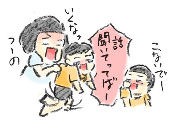 怒りの治らないしーちゃんが(しーちゃんは気持ちを引っ張る)