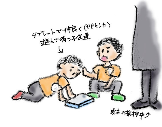 まーくんが好きだったドラゴンボールの悟空Tシャツを着せた子供達が足元で遊ぶ中(THEオレンジ)