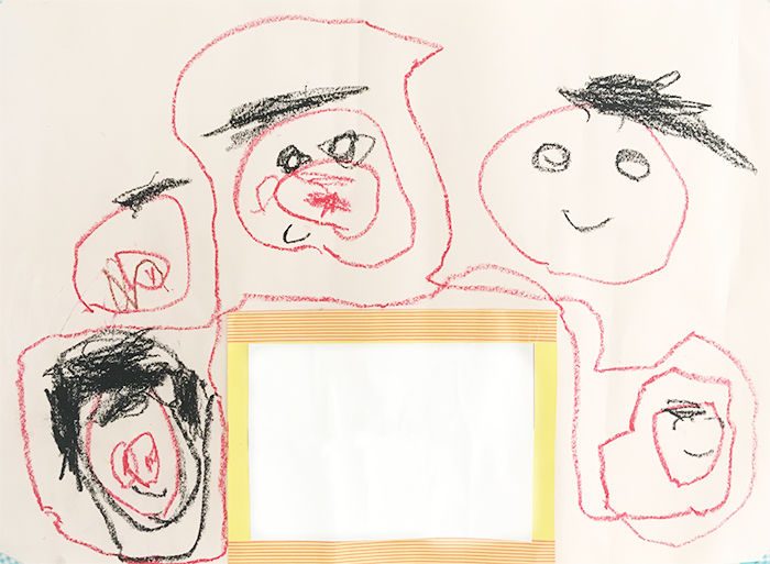 賑やかな家族の絵で、せせらぎさんが明るく居るの、けーくんが家族絵で表現してて