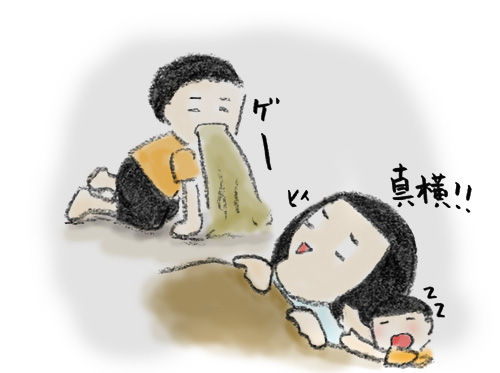 吐く音で目が冷めたから良かったものの、あわや私が大惨事でした。