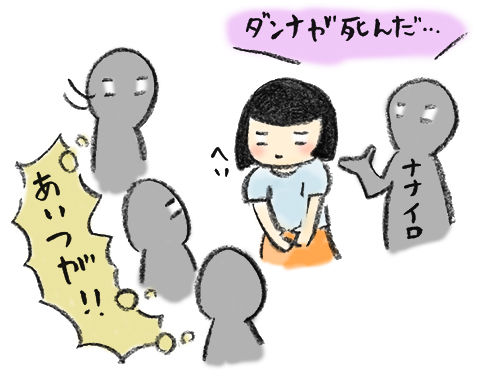「わー。誰ー?よろしくー」という雰囲気の中「旦那が死んだっていうの書いてます…」と言うと