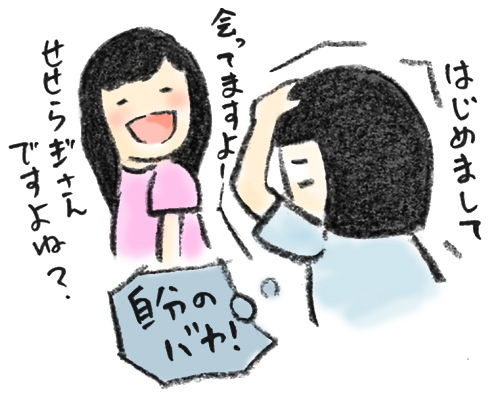 一緒にいらっしゃるまめさん(『凡人すたいる。』)にも名刺をお渡しします。
