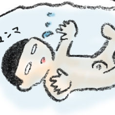 溢れすぎた湯船の中で滑り、完全に沈んだしーちゃん。あわや死ぬ寸前。