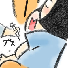 「痛いの嫌だ!痛そう!痛い!」という迫真の演技のしーちゃんと私にプスっと刺します。